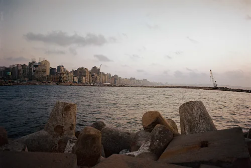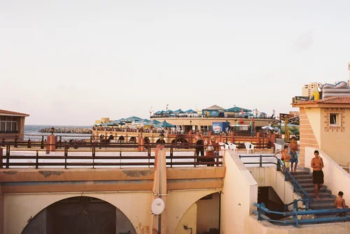 The sea front at Alexandria. For security measures, most of the space adjoining the sea is actually controlled by the army, hence the big blocks of concrete.