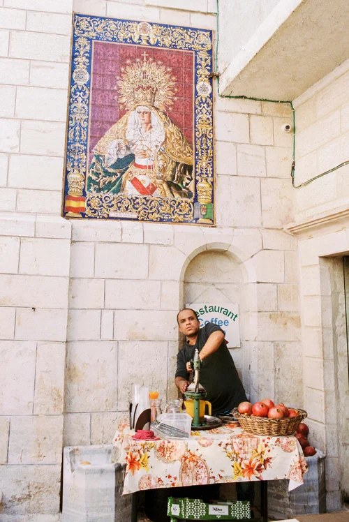 At the 4th station of the Via Crucis, where Jesus met his mother, pilgrims today can quench their thirst with fresh pomegranate juice.