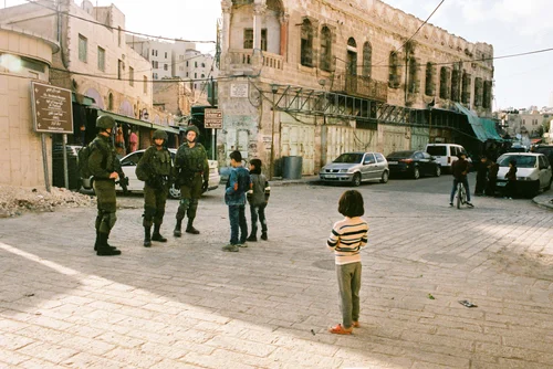 Hebron is one of the holiest cities of Judaism. The Cave of Patriarchs also known as Abraham’s Mosque is the burial site of the biblical patriarchs, including Abraham. Roughly 700 Israeli settlers live in Hebron old town, living on the top floors of the old houses, while the Palestinians live on the ground floor. A metal mesh divides both communities.
